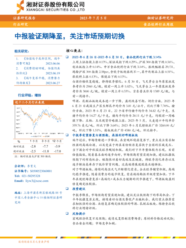 【湘财证券】【20230705】20230705-湘财证券-食品饮料行业周报:中报验证期降至,关注市场预期切换-11页