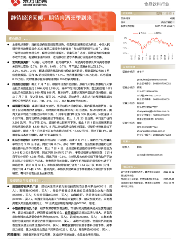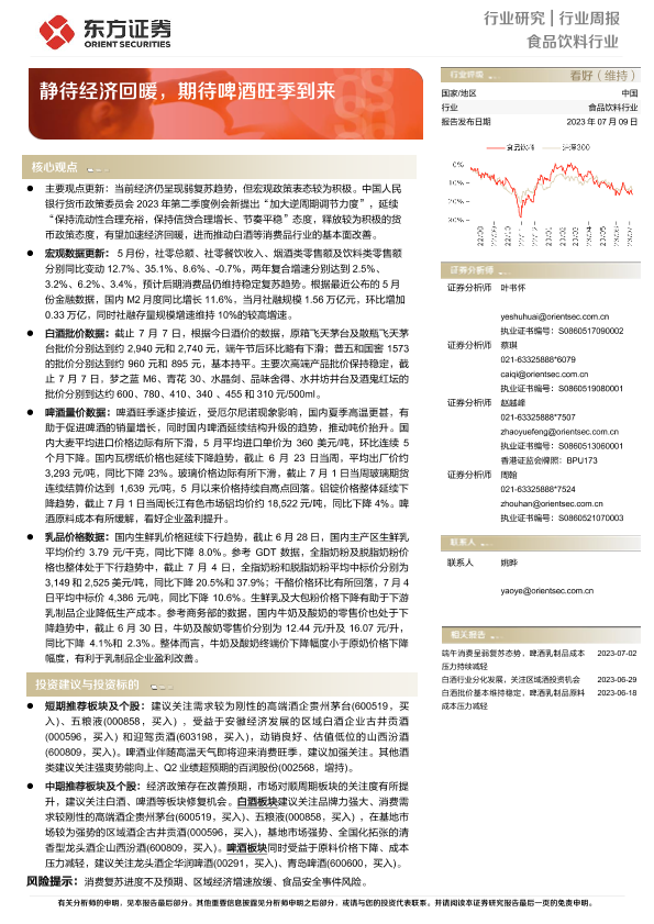 【东方证券】【20230709】20230709-东方证券-食品饮料行业周报:静待经济回暖,期待啤酒旺季到来-12页