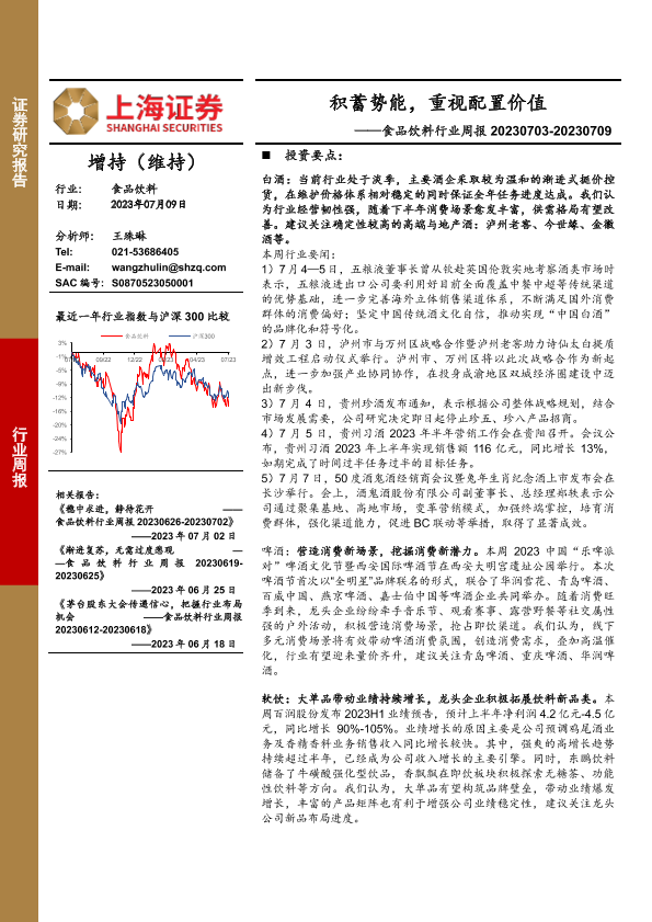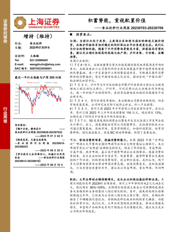 【上海证券】【20230709】20230709-上海证券-食品饮料行业周报:积蓄势能,重视配置价值-20页