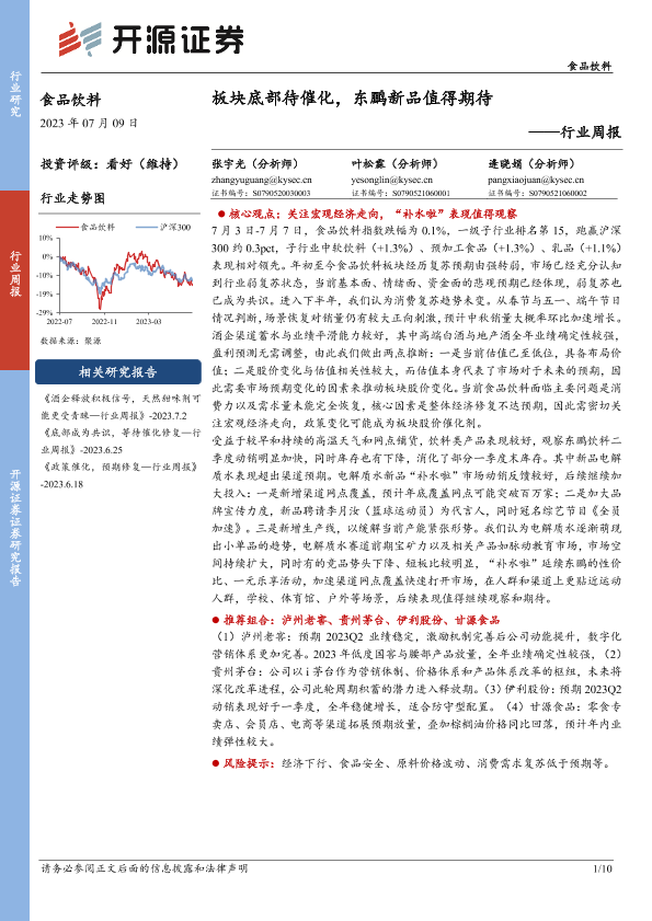 【开源证券】【20230709】20230709-开源证券-食品饮料行业周报:板块底部待催化,东鹏新品值得期待-10页