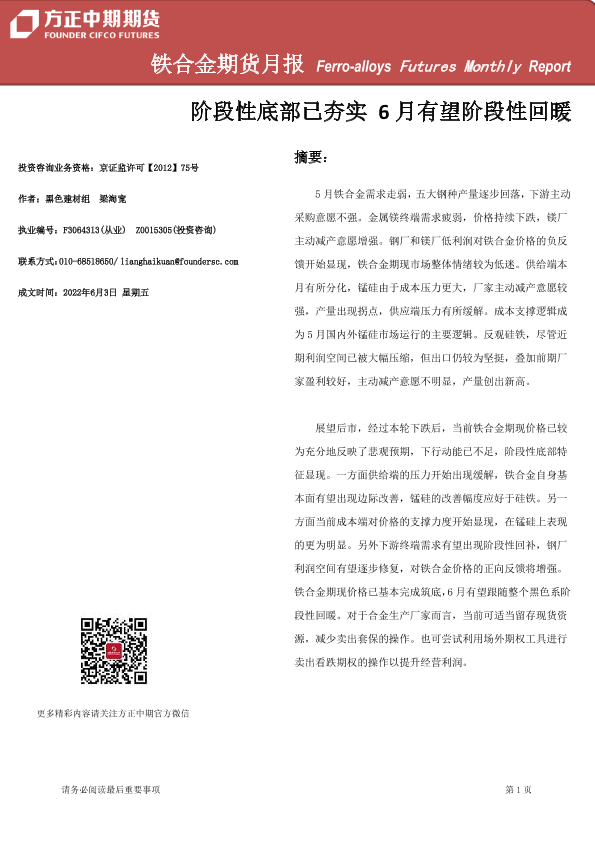【方正中期期货】【20220603】铁合金期货月报-26页