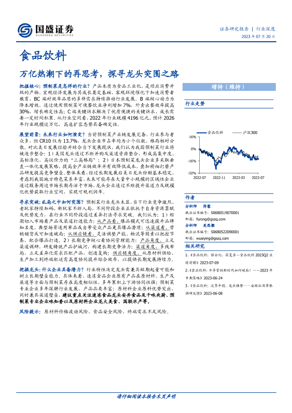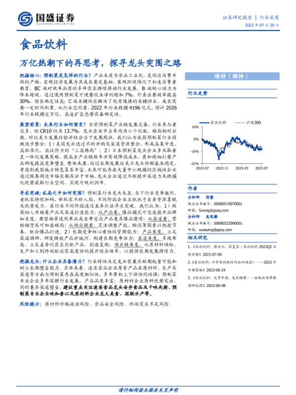 市场预测 行业分析 预制菜 食品饮料 龙头企业