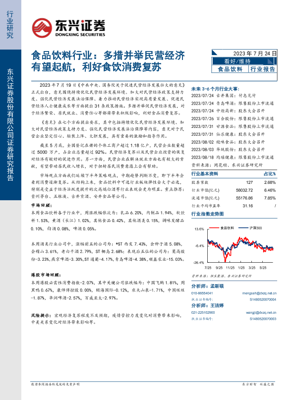 【东兴证券】【20230724】食品饮料行业:多措并举民营经济有望起航,利好食饮消费复苏-10页