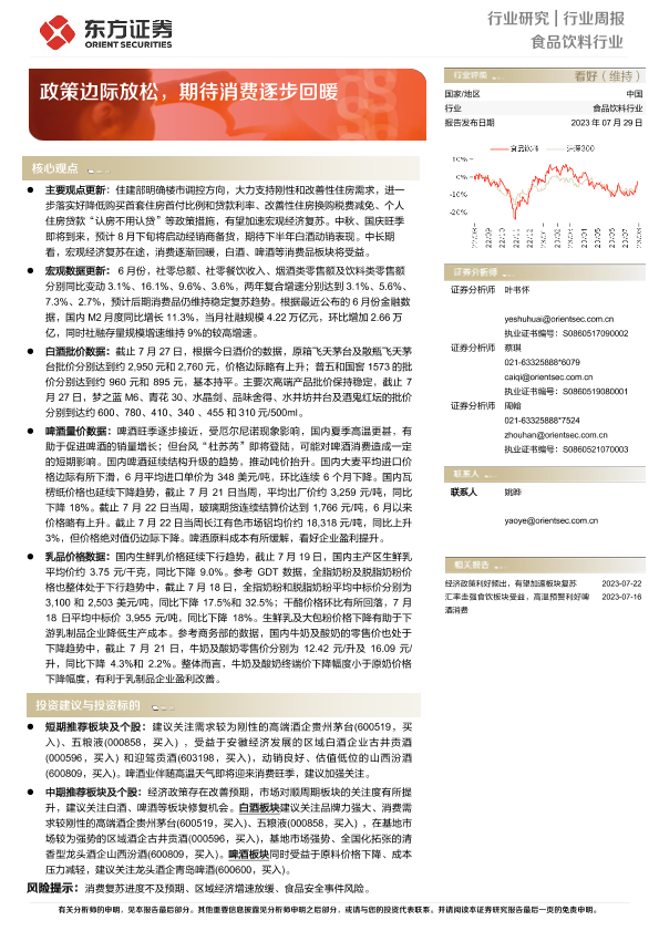 【东方证券】【20230729】20230729-东方证券-食品饮料行业周报:政策边际放松,期待消费逐步回暖-12页