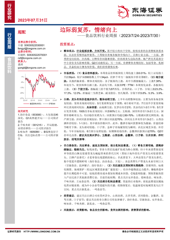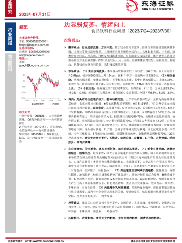 【东海证券】【20230731】20230731-东海证券-食品饮料行业周报:边际弱复苏,情绪向上-10页