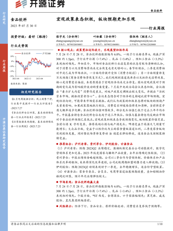 【开源证券】【20230730】20230730-开源证券-食品饮料行业周报:宏观政策表态积极,板块预期更加乐观-10页