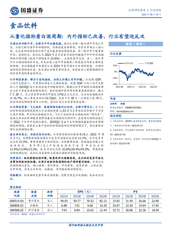 【国盛证券】【20230804】从量化指标看白酒周期:内外指标已改善,行业有望迎反攻-21页