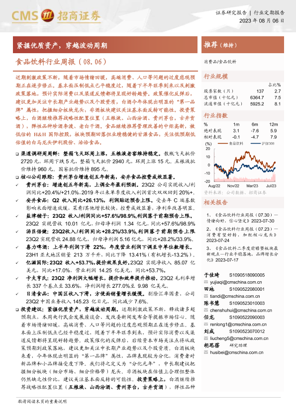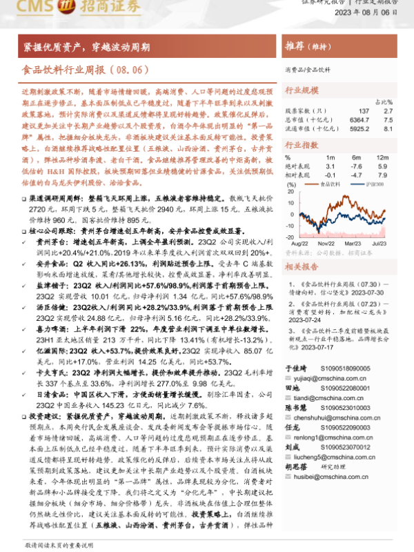 【海通证券】【20230806】食品饮料行业周报:紧握优质资产,穿越波动周期-8页