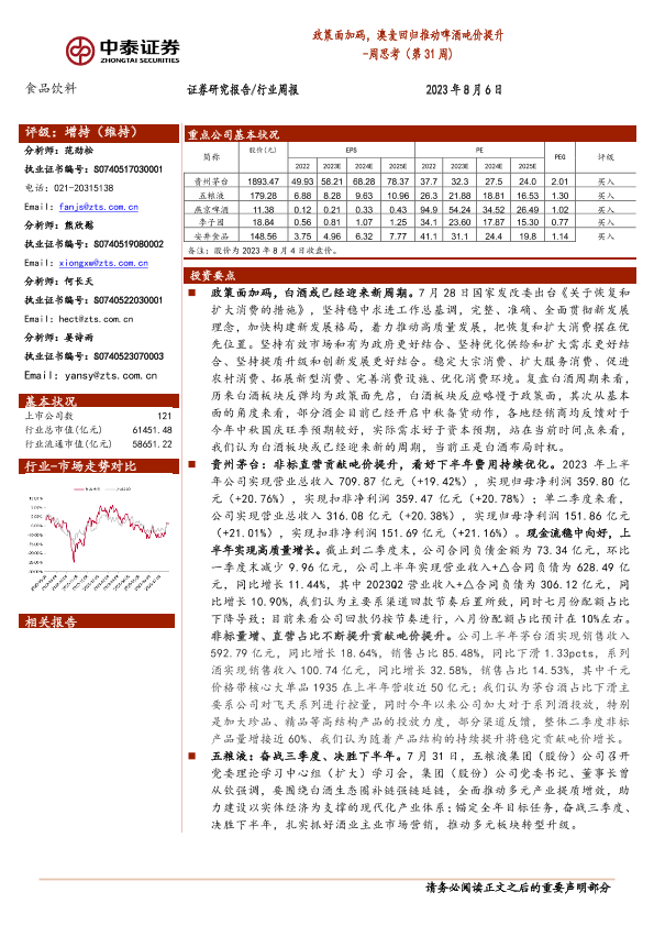 【中泰证券】【20230806】政策面加码,澳麦回归推动啤酒吨价提升 - 周思考(第31周)-5页