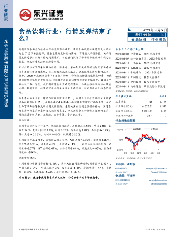 【东兴证券】【20230809】食品饮料行业:行情反弹结束了么?-9页