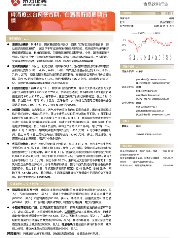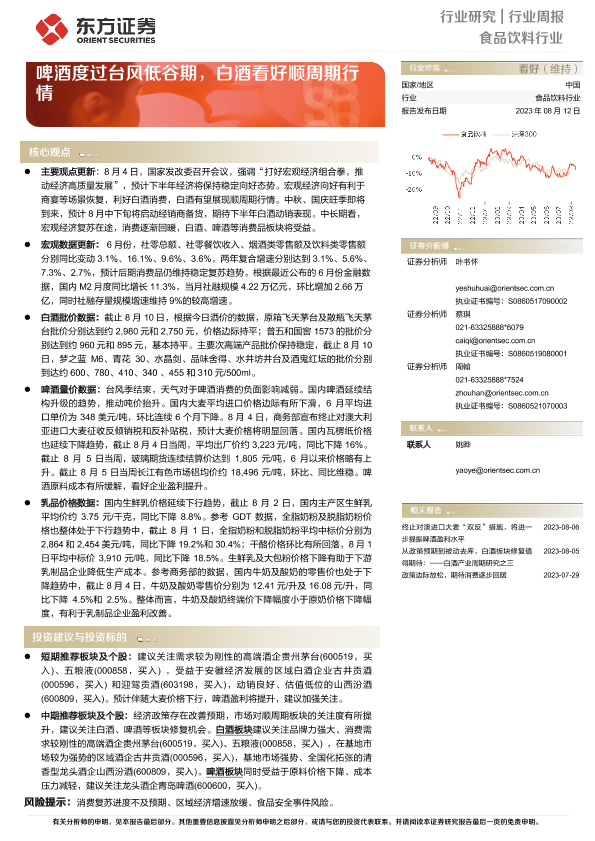 【东方证券】【20230812】20230812-东方证券-食品饮料行业行业周报:啤酒度过台风低谷期,白酒看好顺周期行情-12页