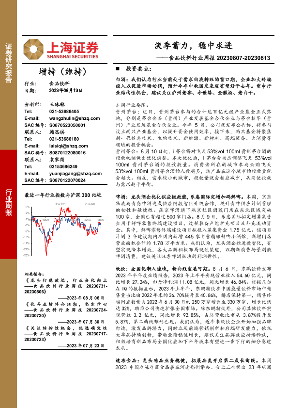 【上海证券】【20230813】20230813-上海证券-食品饮料行业周报:淡季蓄力,稳中求进-19页
