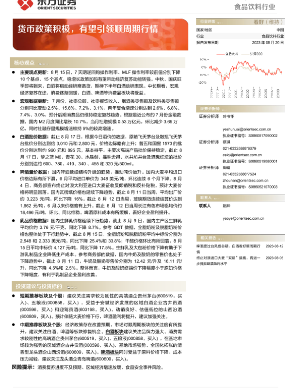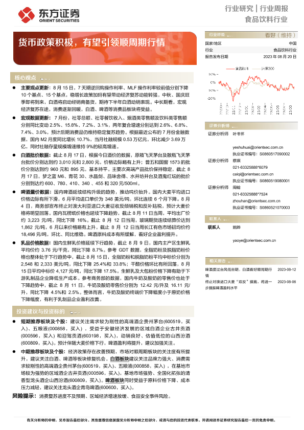【东方证券】【20230820】20230820-东方证券-食品饮料行业行业周报:货币政策积极,有望引领顺周期行情-11页