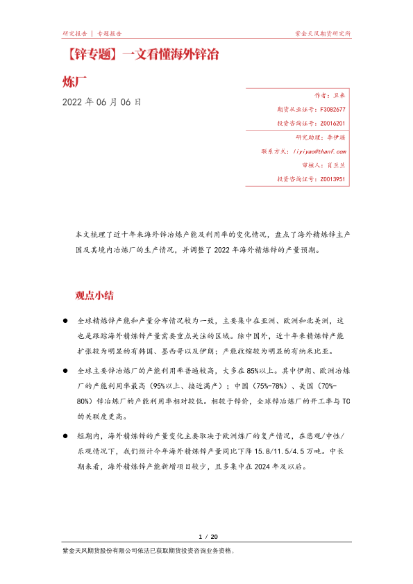 【紫金天风期货】【20220606】锌专题:一文看懂海外锌冶炼厂-20页