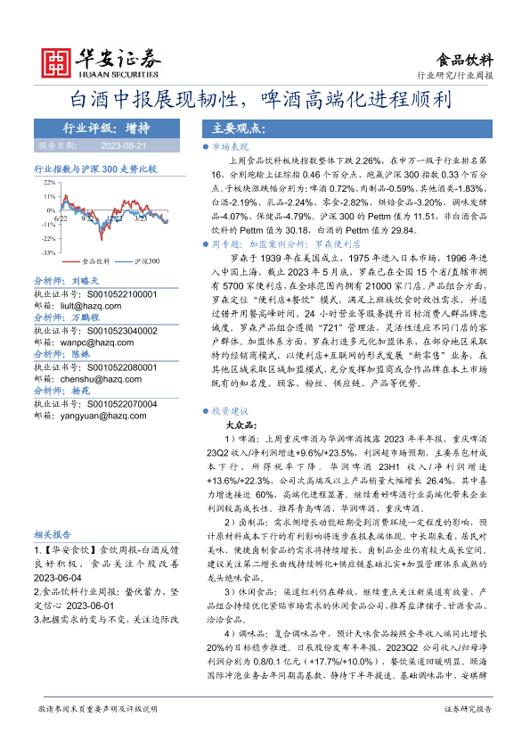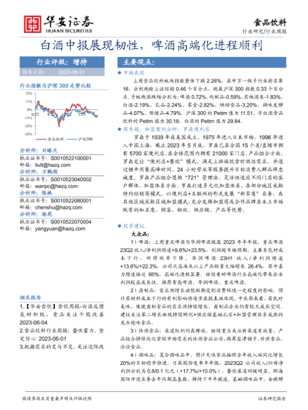 【华安证券】【20230821】20230821-华安证券-食品饮料行业周报:白酒中报展现韧性,啤酒高端化进程顺利-17页