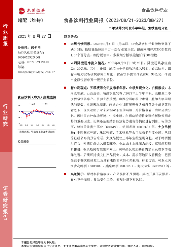 【东莞证券】【20230827】20230827-东莞证券-食品饮料行业周报:五粮液等公司发布半年报,业绩呈现分化-14页