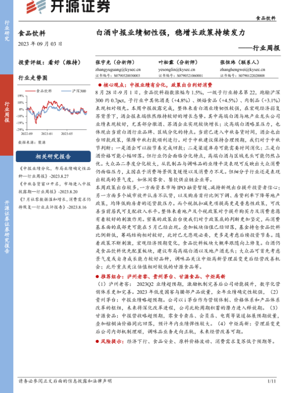 【开源证券】【20230903】20230903-开源证券-食品饮料行业周报:白酒中报业绩韧性强,稳增长政策持续发力-11页