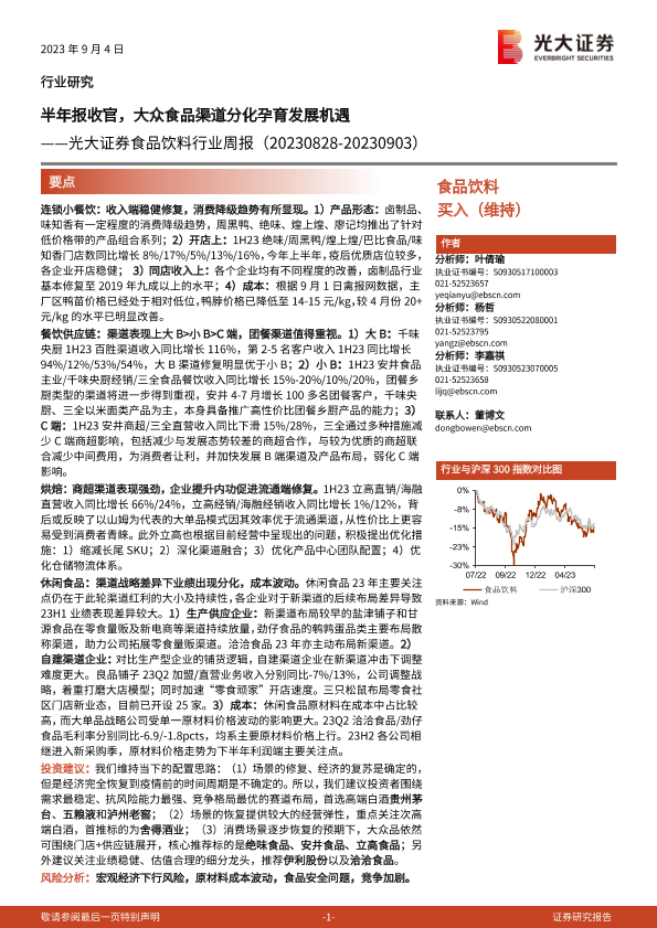 【光大证券】【20230904】20230904-光大证券-食品饮料行业周报:半年报收官,大众食品渠道分化孕育发展机遇-11页