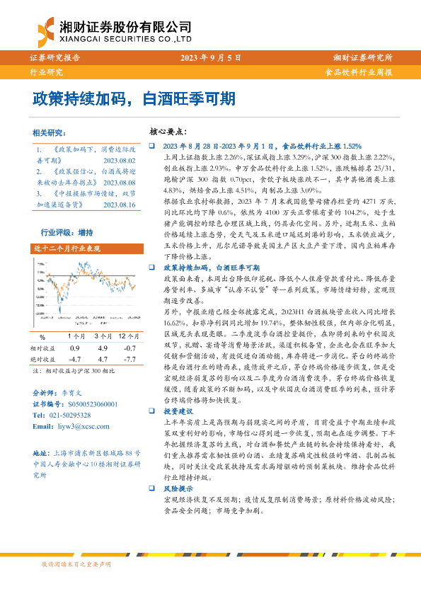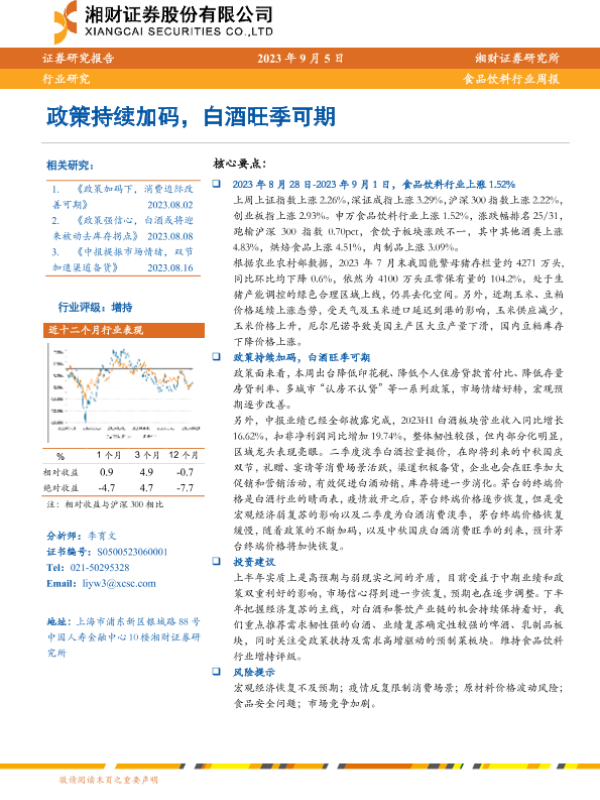 【湘财证券】【20230905】20230905-湘财证券-食品饮料行业周报:政策持续加码,白酒旺季可期-11页