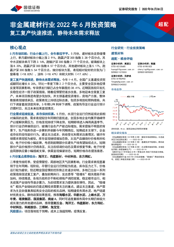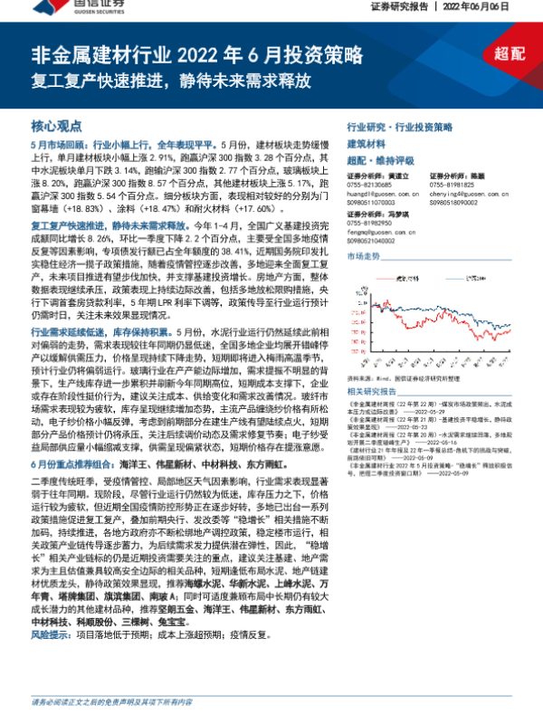 【国信证券】【20220606】非金属建材行业2022年6月投资策略:复工复产快速推进,静待未来需求释放-25页