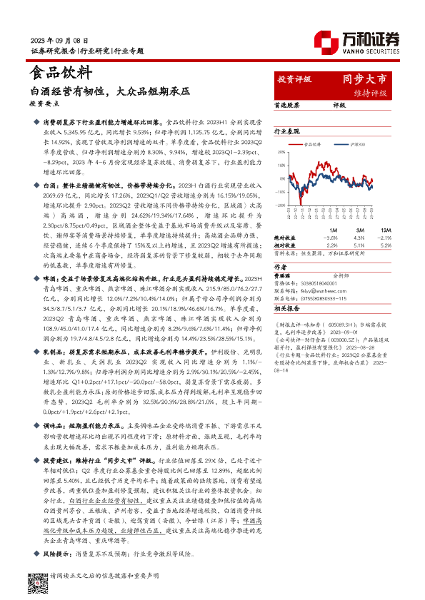 【万和证券】【20230908】20230908-万和证券-食品饮料行业专题:白酒经营有韧性,大众品短期承压-24页