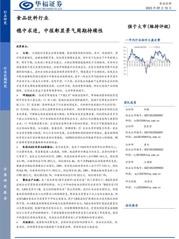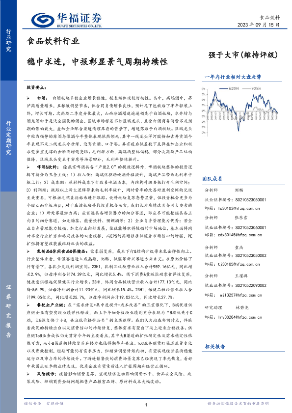 【华福证券】【20230915】食品饮料行业:稳中求进,中报彰显景气周期持续性-47页