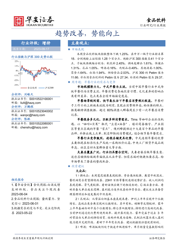 【华安证券】【20230917】20230917-华安证券-食品饮料行业周报:趋势改善,势能向上-18页