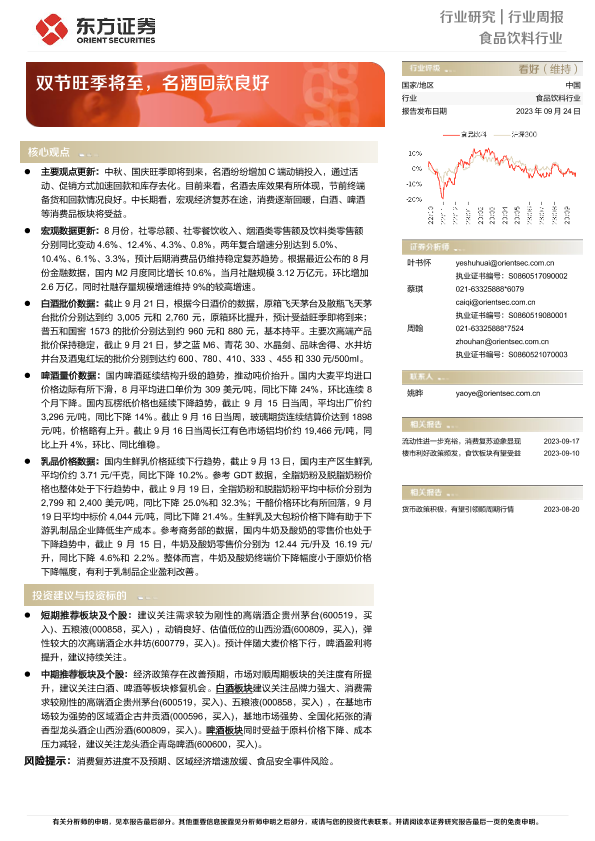 【东方证券】【20230924】20230924-东方证券-食品饮料行业行业周报:双节旺季将至,名酒回款良好-11页