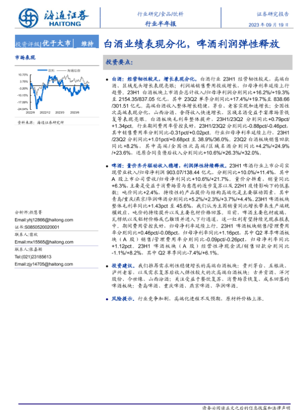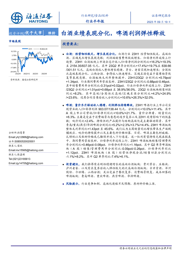 【海通证券】【20230919】20230919-海通证券-饮料行业半年报:白酒业绩表现分化,啤酒利润弹性释放-21页