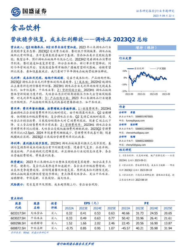 【国盛证券】【20230922】调味品2023Q2总结:营收稳步恢复,成本红利释放-10页