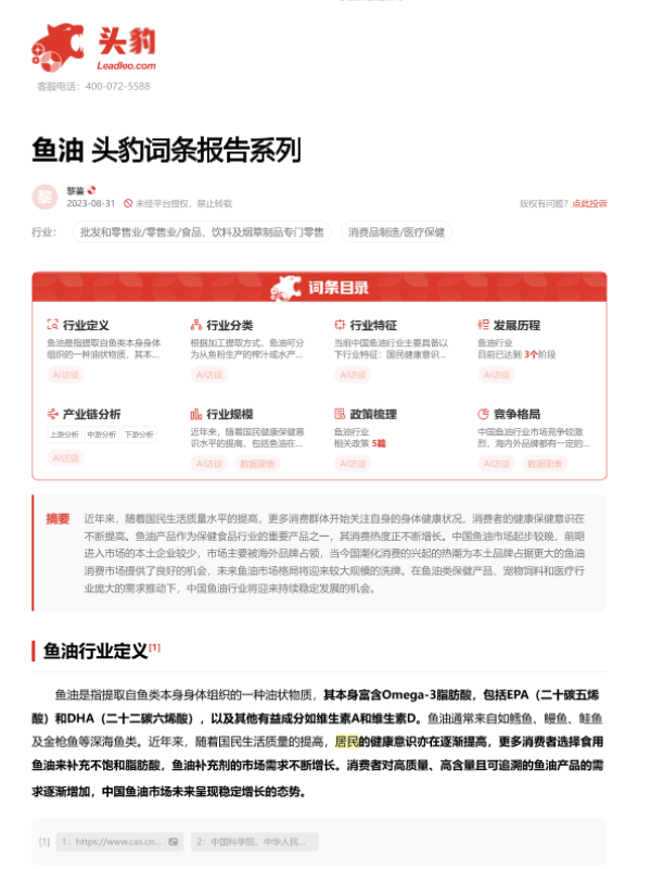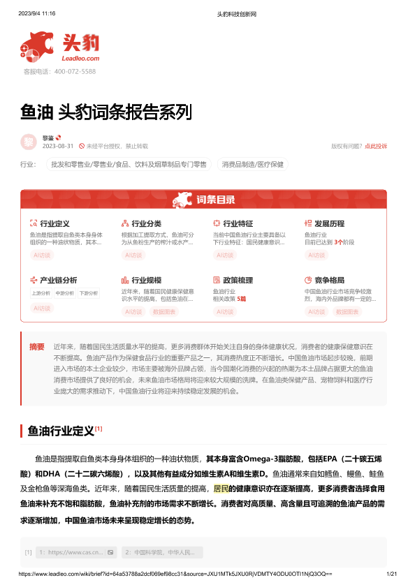 【头豹研究院】【20230831】鱼油 头豹词条报告系列-21页