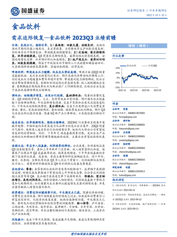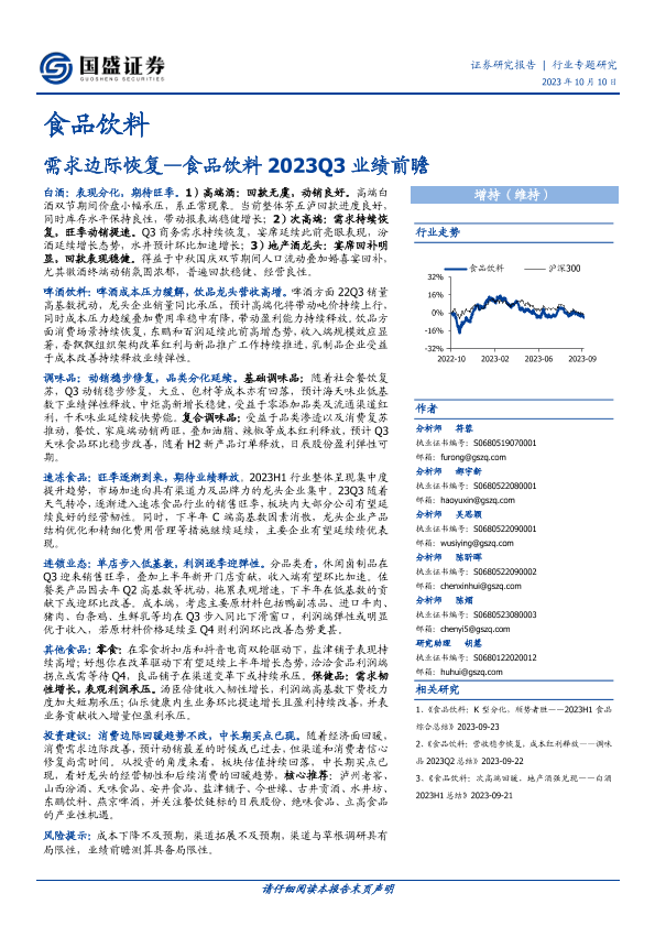 【国盛证券】【20231010】食品饮料2023Q3业绩前瞻:需求边际恢复-12页
