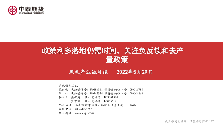 【中泰期货】【20220529】黑色产业链月报:政策利多落地仍需时间,关注负反馈和去产量政策-77页