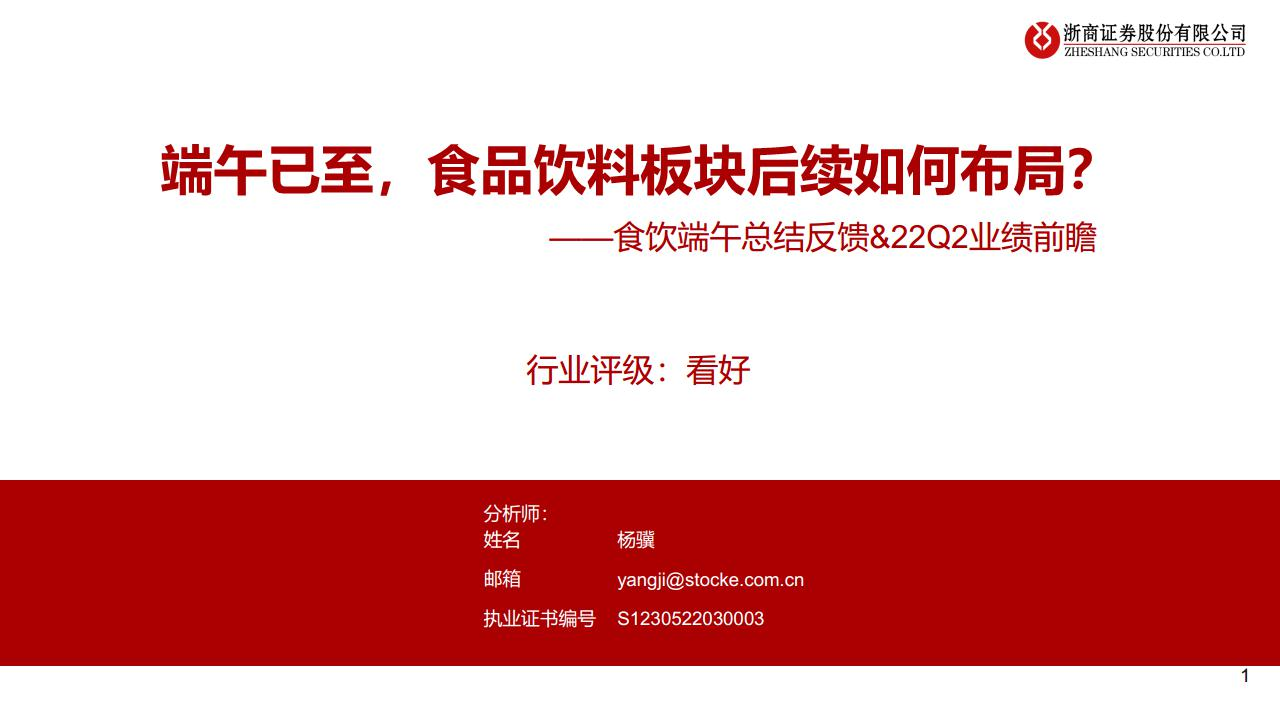 【浙商证券】【20220606】食饮行业端午总结反馈&22Q2业绩前瞻:端午已至,食品饮料板块后续如何布局?-39页