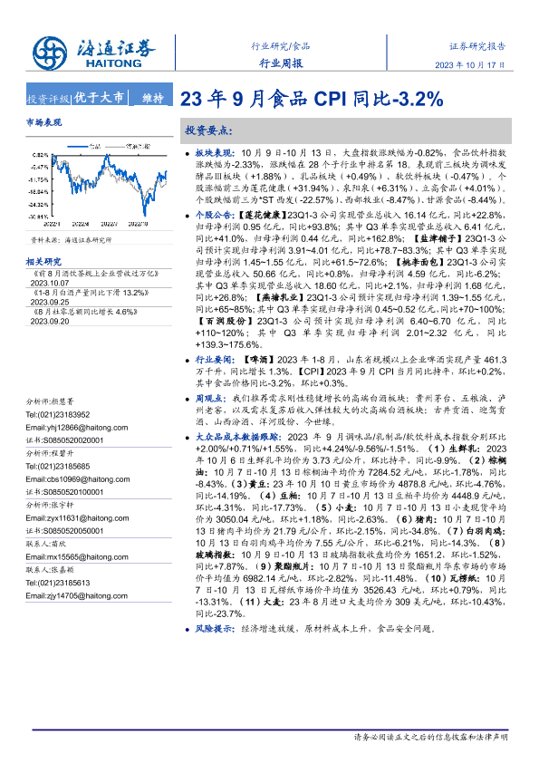 【海通证券】【20231017】20231017-海通证券-食品行业周报:23年9月食品CPI同比-3.2%-17页