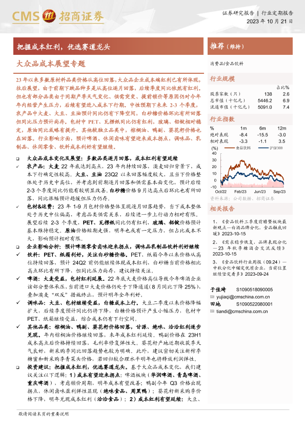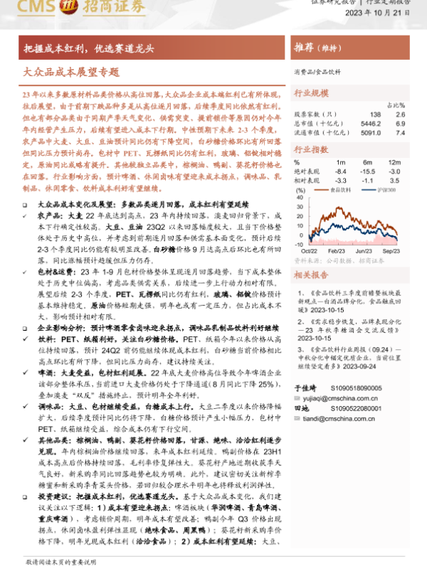 【海通证券】【20231021】食品饮料:大众品成本展望专题-把握成本红利,优选赛道龙头-19页