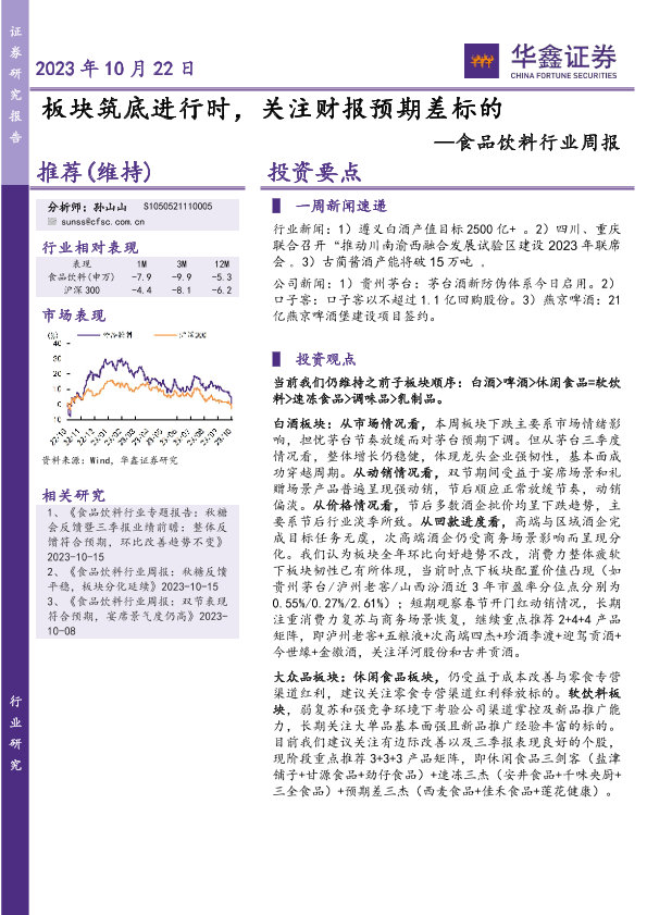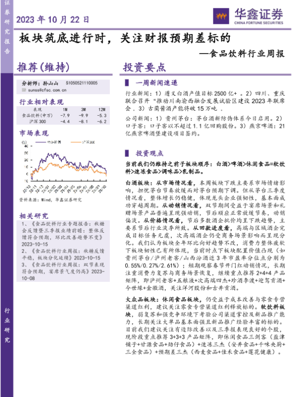 【华鑫证券】【20231022】20231022-华鑫证券-食品饮料行业周报:板块筑底进行时,关注财报预期差标的-22页