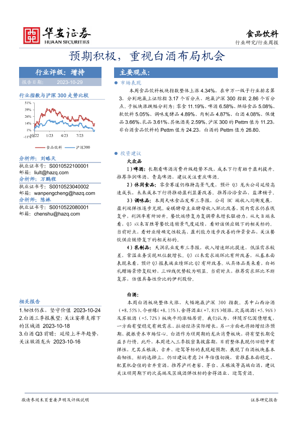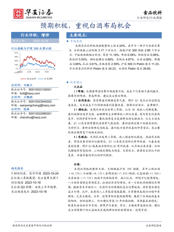 【华安证券】【20231029】20231029-华安证券-食品饮料行业周报:预期积极,重视白酒布局机会-17页