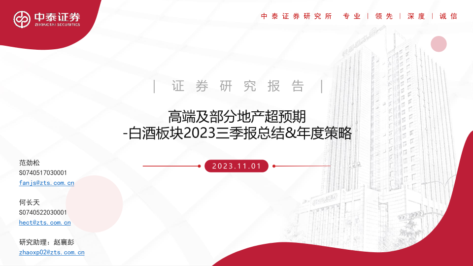 【中泰证券】【20231101】白酒板块2023三季报总结&年度策略:高端及部分地产超预期-47页