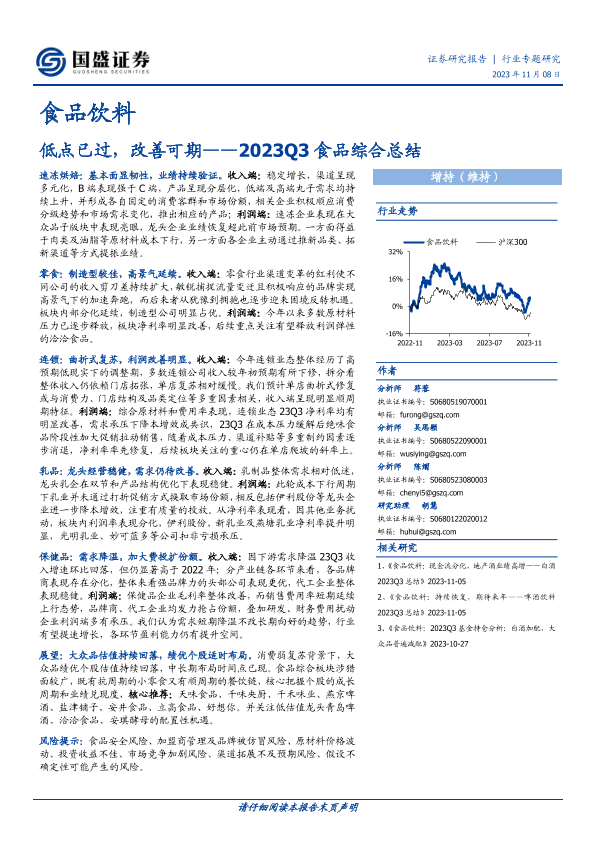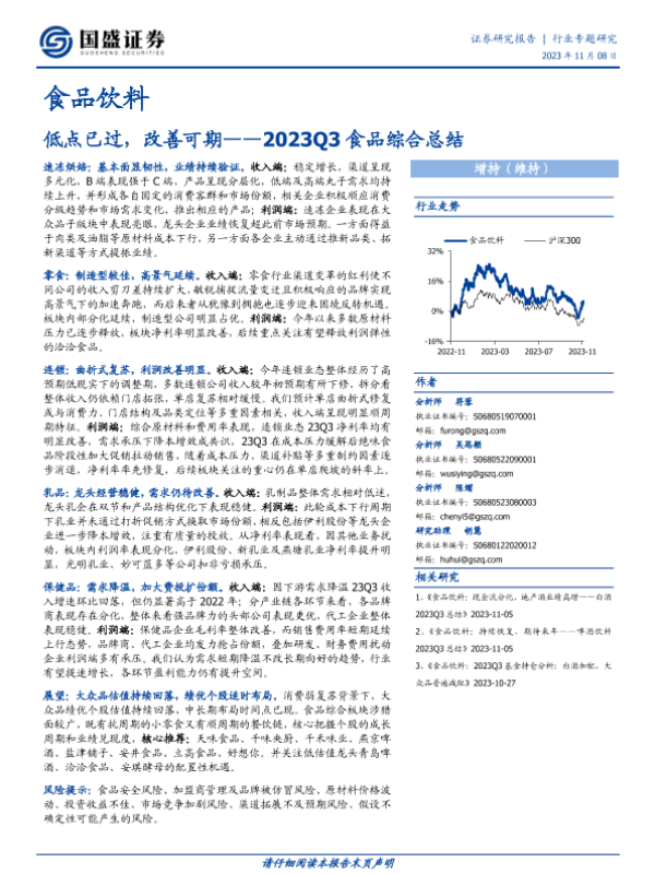 【国盛证券】【20231108】2023Q3食品综合总结-低点已过,改善可期-28页
