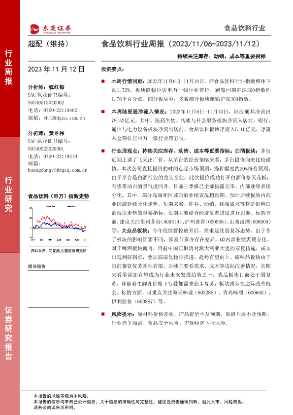 【东莞证券】【20231112】20231112-东莞证券-食品饮料行业周报:持续关注库存、动销、成本等重要指标-13页