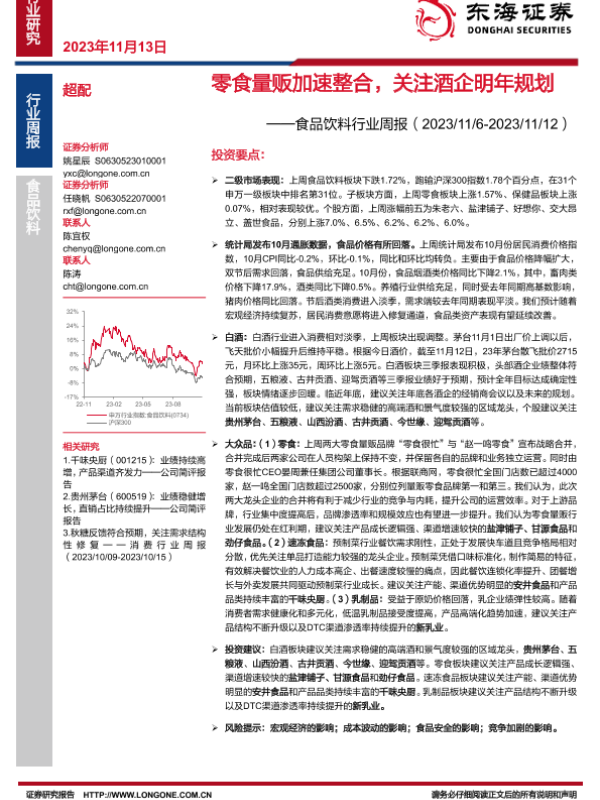 【东海证券】【20231113】20231113-东海证券-食品饮料行业周报:零食量贩加速整合,关注酒企明年规划-10页