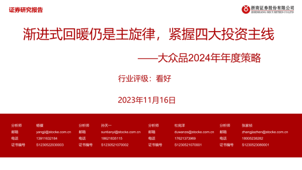 【浙商证券】【20231116】2024年大众品年度策略:渐进式回暖仍是主旋律,紧握四大投资主线-34页