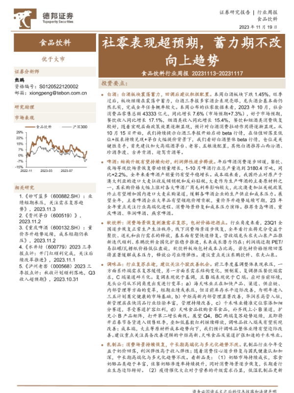【德邦证券】【20231119】食品饮料行业周报:社零表现超预期,蓄力期不改向上趋势-15页