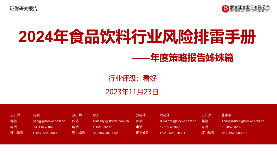 【浙商证券】【20231123】2024年食品饮料行业风险排雷手册:年度策略报告姊妹篇-33页