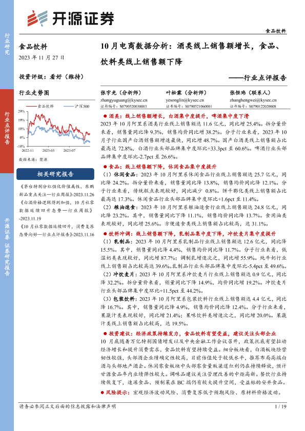 【开源证券】【20231127】20231127-开源证券-食品饮料10月电商数据分析:酒类线上销售额增长,食品、饮料类线上销售额下降-19页