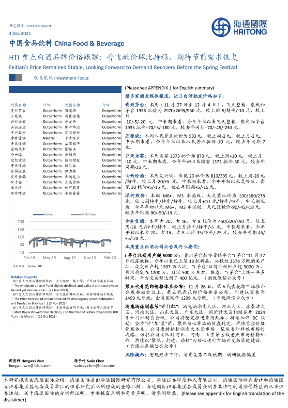 【海通国际】【20231204】HTI重点白酒品牌价格跟踪:普飞批价环比持稳,期待节前需求恢复-12页