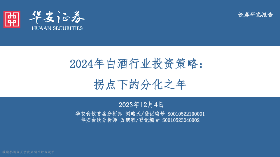 【华安证券】【20231204】2024年白酒行业投资策略:拐点下的分化之年-22页