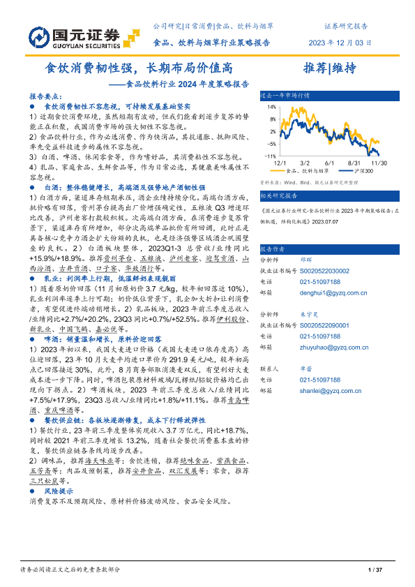 【国元证券】【20231203】食饮消费韧性强,长期布局价值高-37页
