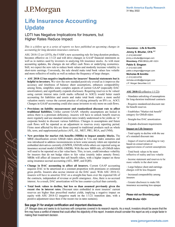 【J.P. Morgan】【20220531】LDTI对保险公司有负面的影响,但较高的费率降低了影响-25页